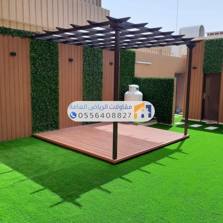 تضفي لمسة دافئة وطبيعية على المكان. يفضل دائماً اختيار خشب “التيك” (Teak) أو الخشب المعالج (WPC) لقدرته العالية على تحمل الرطوبة والحرارة دون الحاجة لصيانة مستمرة.
