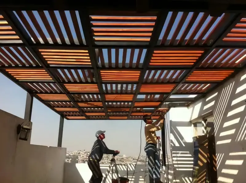 - هياكل صلبة: استخدام الألمنيوم المطلي حرارياً أو الخشب المعالج يمنع الصدأ والالتواء.